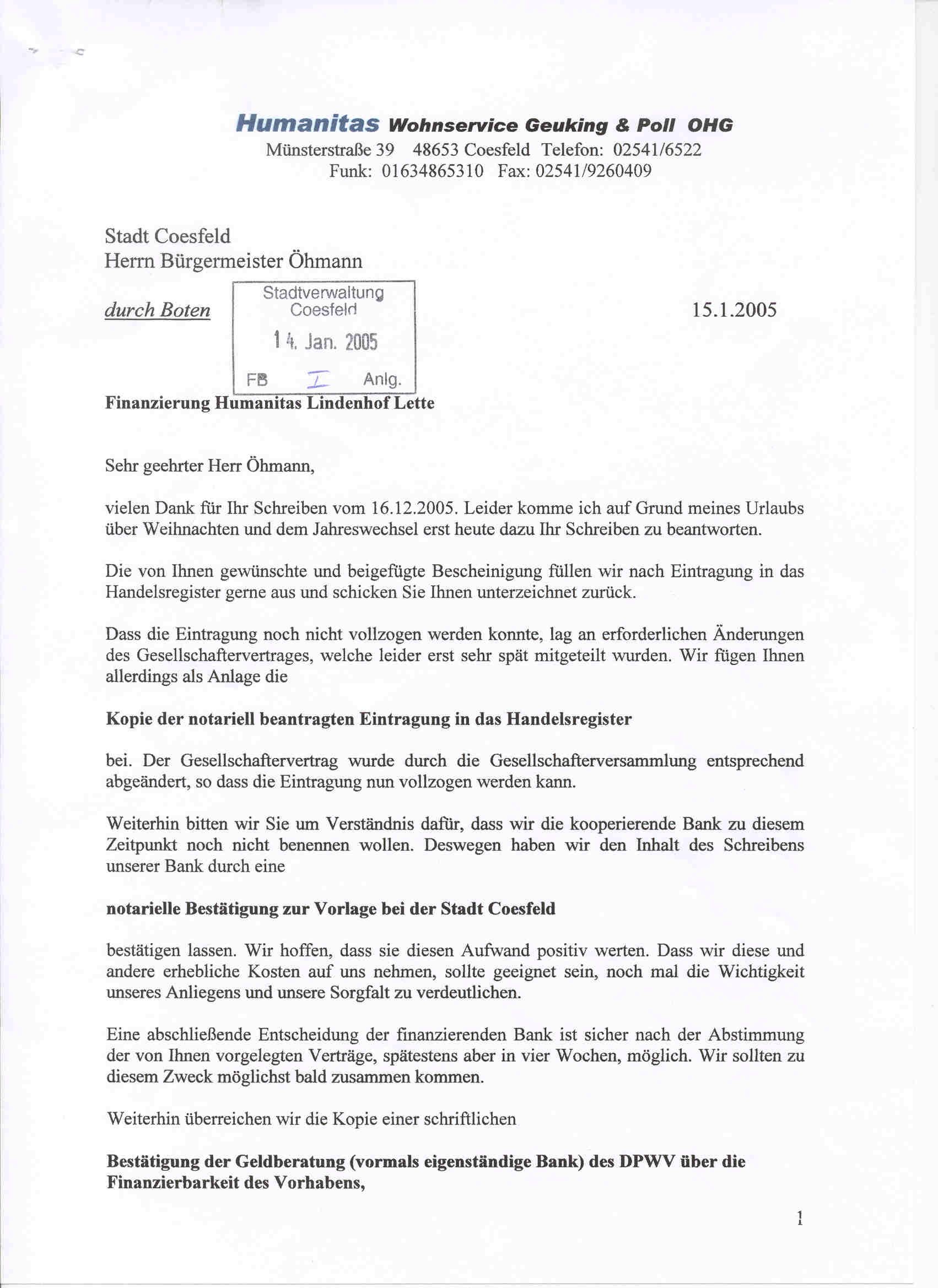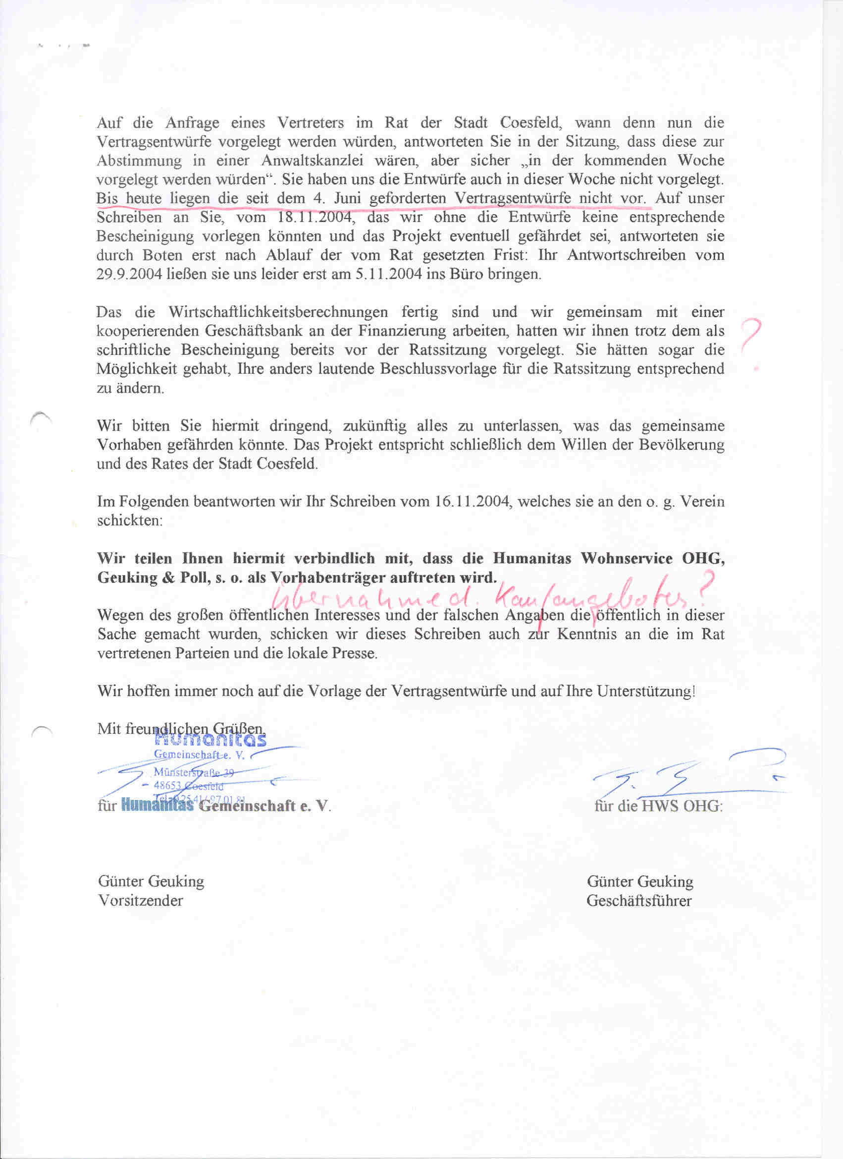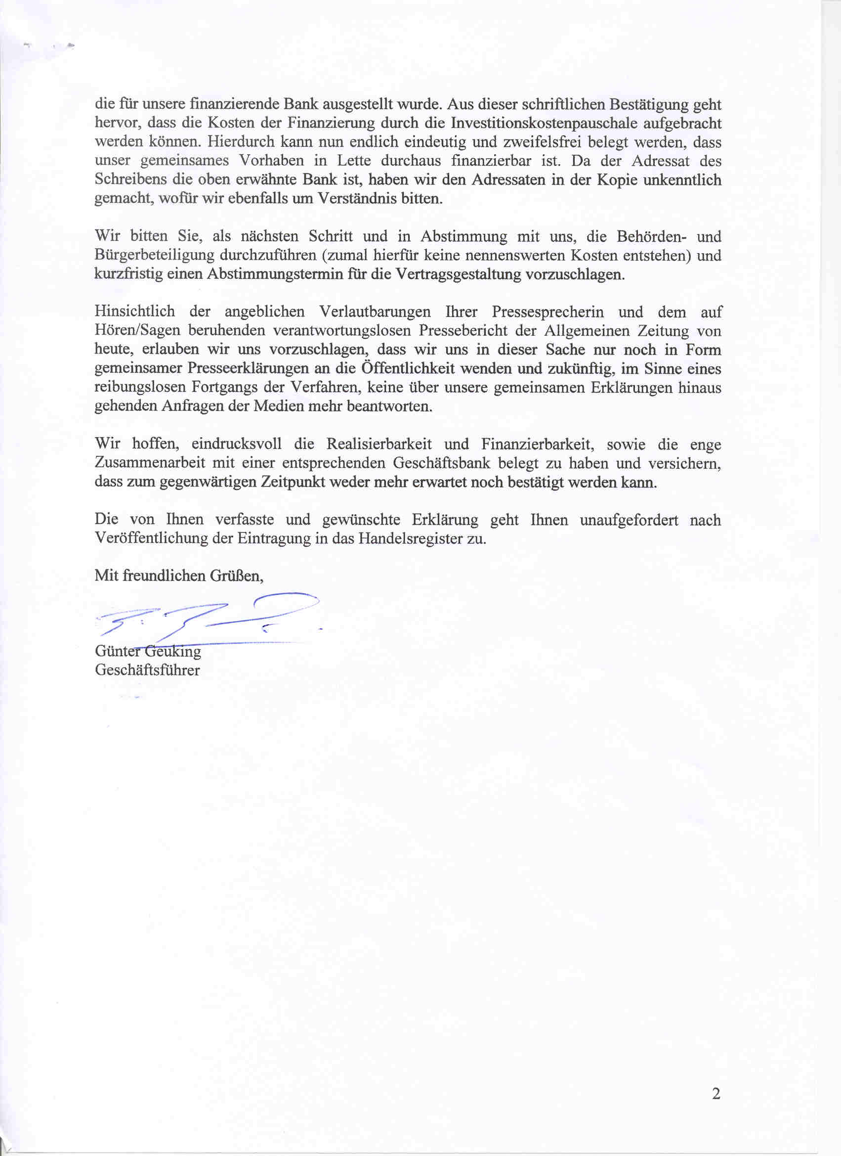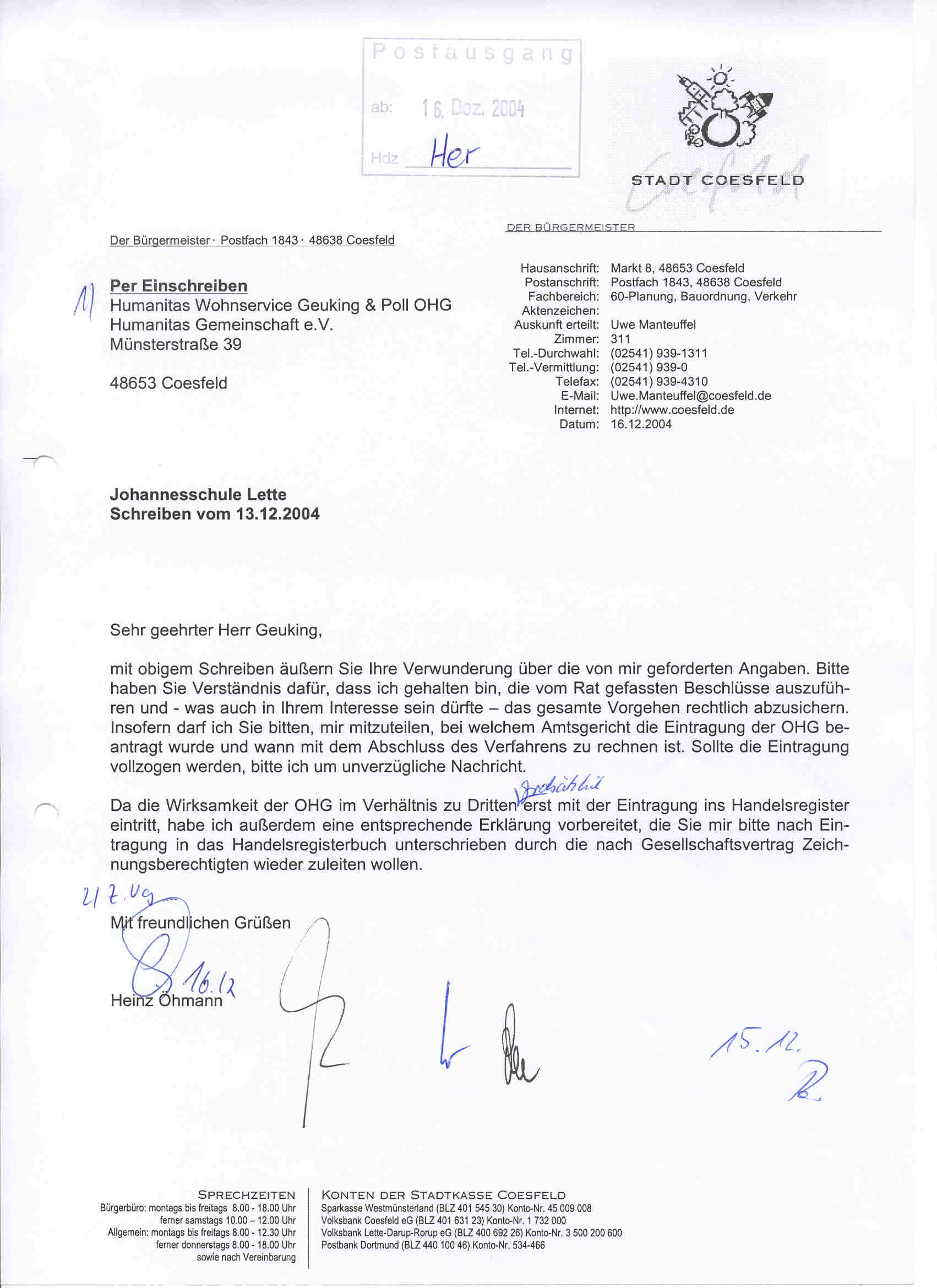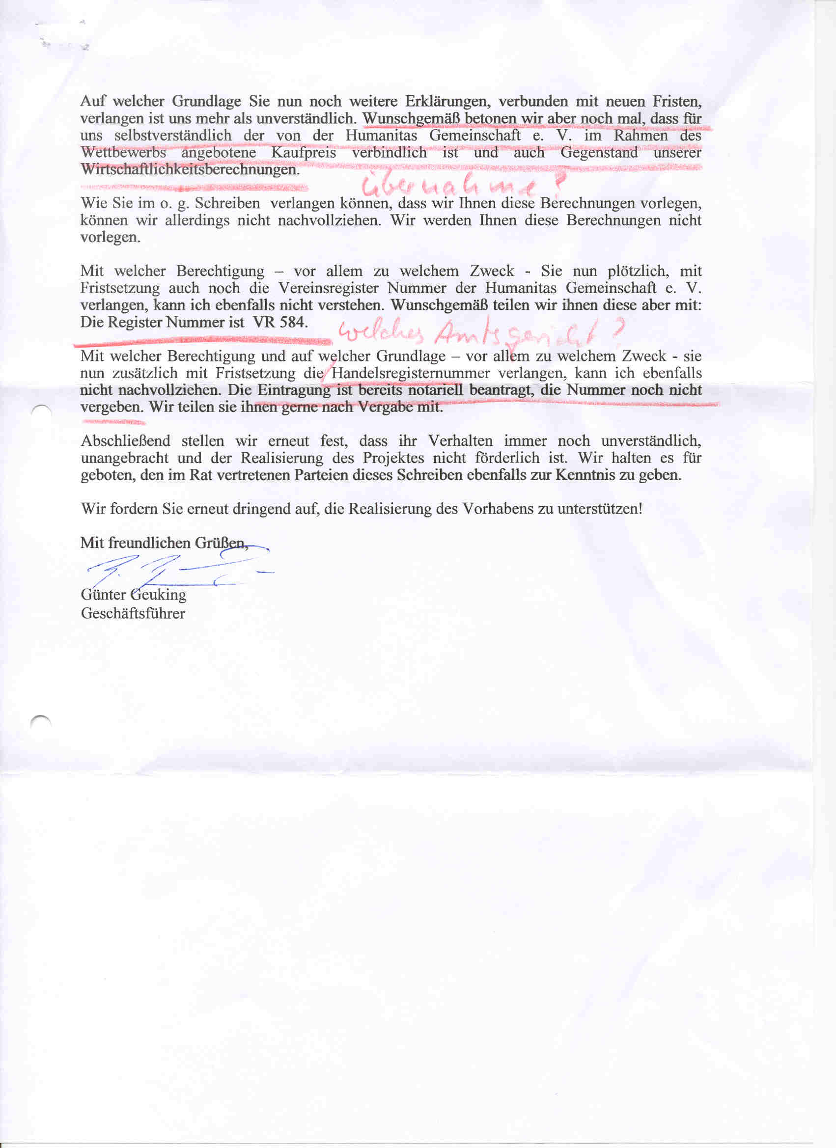 | Ö 6 | Verhandlungen zum Verkauf der Johannesschule in Lette