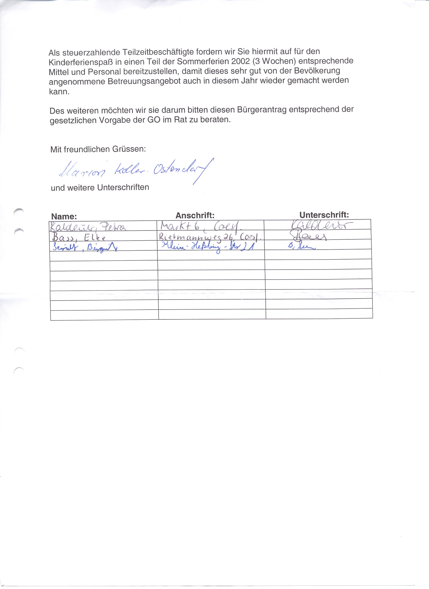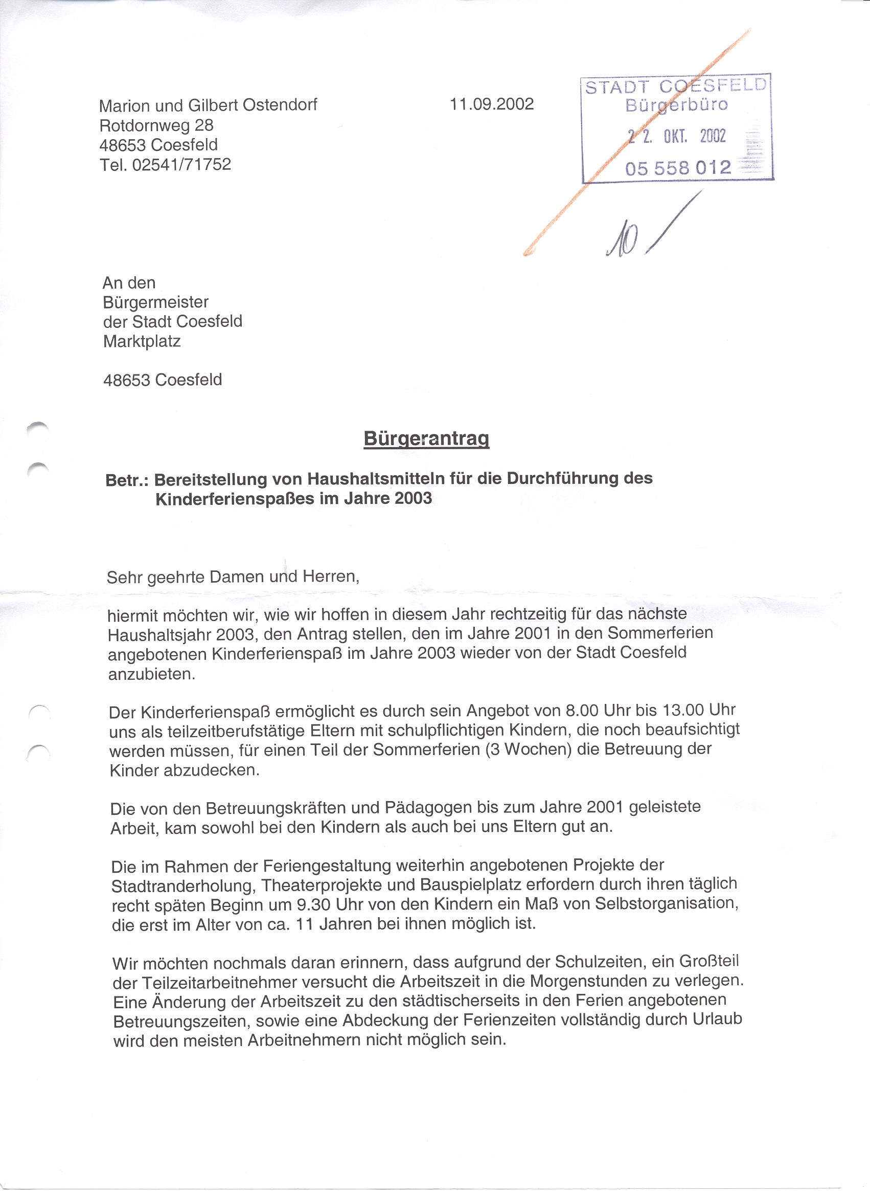 | Ö 3 | HA/21.11.2002/Anregung der Eheleute Ostendorf