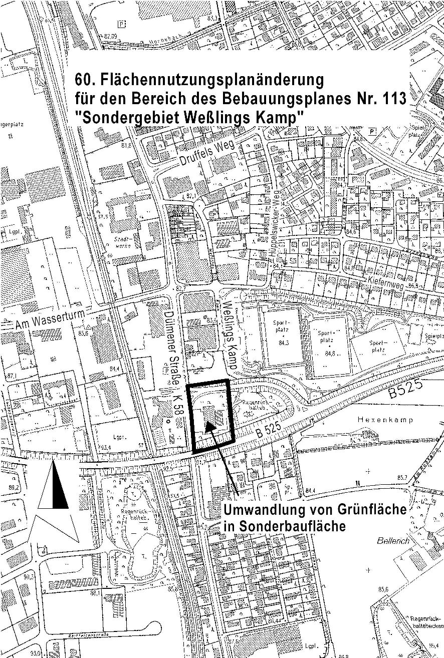 60. Änderung des Flächennutzungsplanes für den Bereich "Sondergebiet Weßlingskamp"